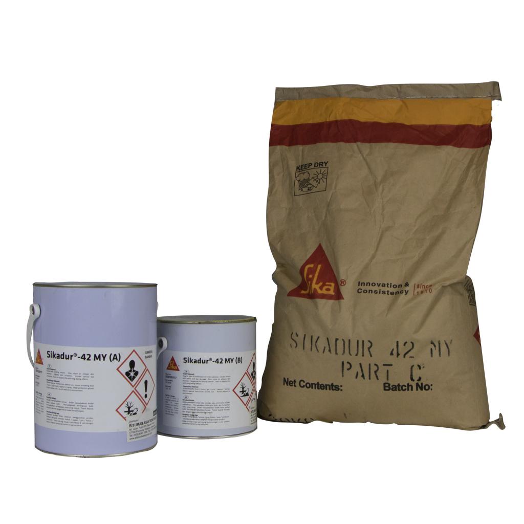 Sikadur®-42 MY is a 3-part pourable grout, based on a combination of epoxy resins and specially graded aggregates. After mixing, it forms a flowable mortar, suitable for grouting and filling.